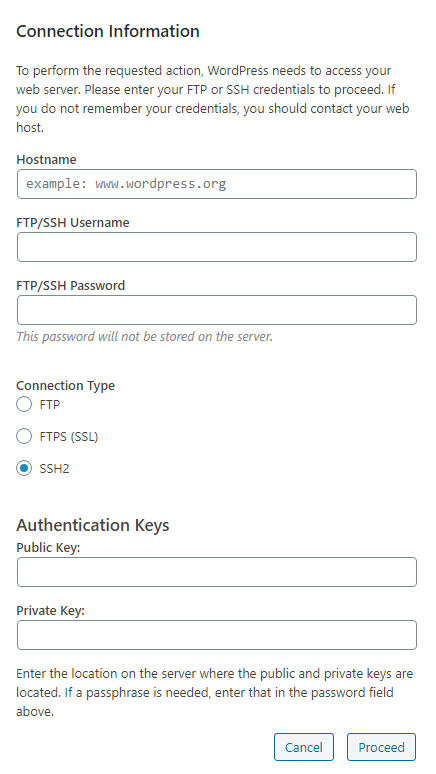 将wordpress搬家,还算顺利,最后有一个细节还没完善好,就是我新网站不能在服务器写入文件,具体现象如下。