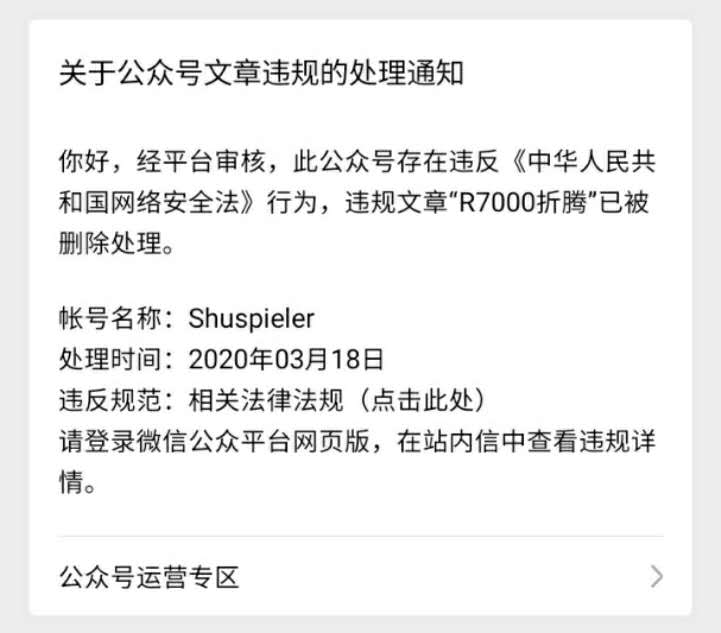 前几天收到一条微信站内信,讲我的一篇文章因为违反《中华人民共和国网络安全法》被删帖。我很好奇到底是什么原因。
