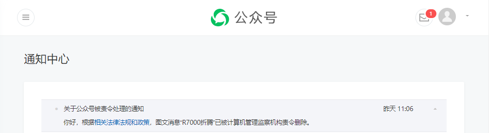 后来注意到有一条公众号平台站内消息,里边提供了稍微多一点的内容,我这次文章被删是计算机管理监察机构责令删除的,也就是说,被删原因不是用户的多次举报。