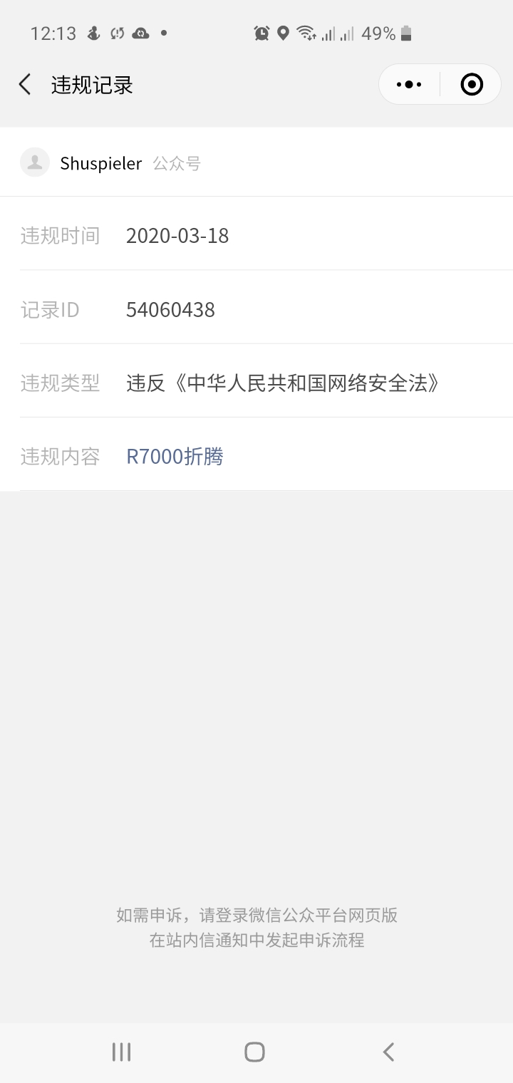 就像截图中讲的,我遇到的应该是第三种,就是这个删除命令是网监部门下达的,相当于执法评判部门直接给出的评判,自然没有申诉的意义。