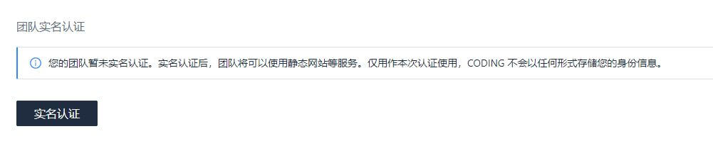 - 首先是实名认证,Coding说不实名不能用静态网站服务,可是我今天整个流程实名了两遍,一次是在Coding.net实名,另一次是跳转到腾讯云实名。不知道coding的实名是不是必须的,如果是保险起见,可以在coding的个人设置里边先实名一次。