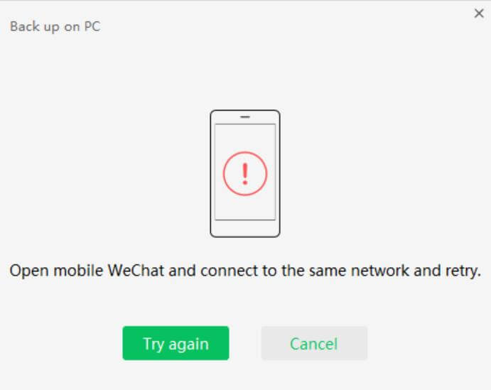 想把微信聊天记录备份在电脑上,可以一直提示:“连接失败,请在电脑上重试”。已经检查了是在同一个网络,电脑和手机都连接了同一个WiFi。可是依旧莫名连接不上。网上的教程大多就是同一无线局域网,或者直接电脑连接手机本身的热点,关闭电脑防火墙等,可是依旧不行,错误提示如下。