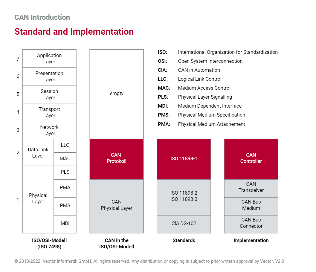 CAN (Controller Area Network) 在1980年由Bosch提出并于1994年进行了标准化(ISO 11891-1)。时至今日,CAN依旧在汽车动力总成,底盘等领域有着广泛的应用。CAN可以提供非常可靠的数据传输,以及满足很多情况下对于实时性的要求。