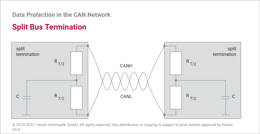 双绞线可以有效地降低电磁干扰,在CAN总线(CAN Bus)中这两条线分别被称作 CAN high line (CANH) 和 CAN low line (CANL). 在网络物理层基于差分电压传输,这种模式可以有效消除电机,点火系统等开关造成干扰电压冲击带来的影响。