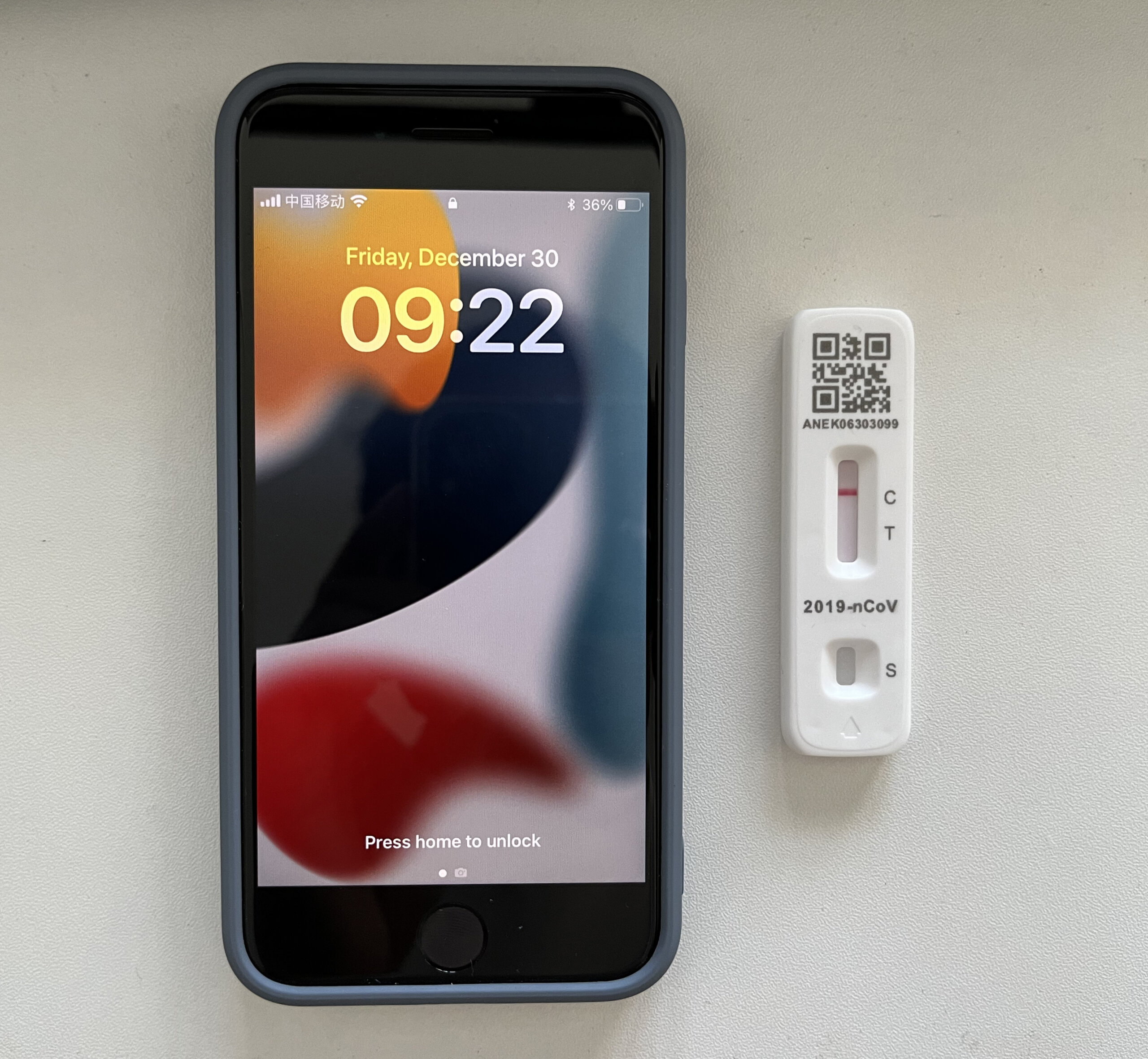 今天周五在聚会后第五天,要是那天二次感染的话我现在应该是症状最重,以及检测的话将会是强阳状态,我特意做了一个抗原,下图是我刚刚的照片,我在阳光下仔细看T区域,确认没有一丁点的颜色,结合我没有任何症状,可以确认至少是第二次强密接,我没有二次感染。