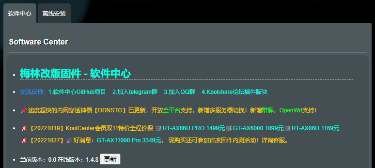 在我更改后也没有重启,再次打开软件中心的时候,就显示找到了最新1.4.8版本的软件,点击按钮成功完成插件的更新。