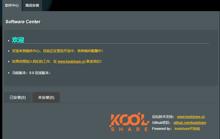 最近打算将我的R7000拿回家里使用,发现koolshare软件中心检测不出版本,经过查询是由于koolshare更改过域名,老版本内置的域名失效,所以无法连接服务器,需要更新一下配置里边的软件中心域名信息。