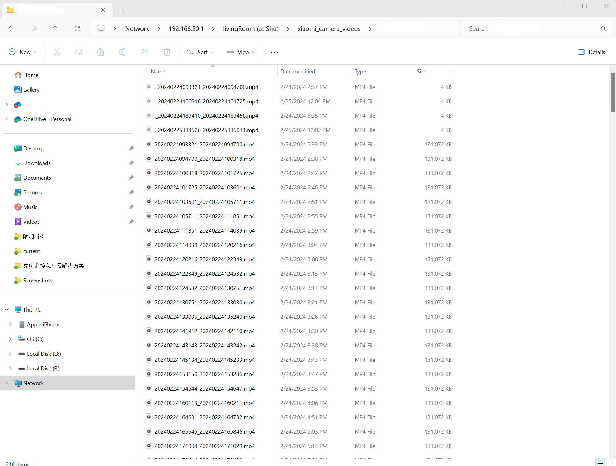 试用了一段时间,效果还是很不错的。这样设置后,相当于监控摄像头拍摄到的画面存储了两份,一份在摄像头中的SD卡中,另外一份存储在了私有云我们U盘中,实现了双保险。在极端情况下假设不法分子进入室内后破坏掉我们的摄像头,损坏了其中的SD储存卡,那么在物理损坏摄像头前最后的视频,还会留存在我们私有云U盘中一份的,达到了和官方云服务相同的目标。并且可以同一存储空间挂多个摄像头,比如说我目前设置好了两个,一个安装在客厅,一个安装在地下室,由于在同一个网络,都二次备份到我路由器同一个U盘里,通过不同文件夹来区分。