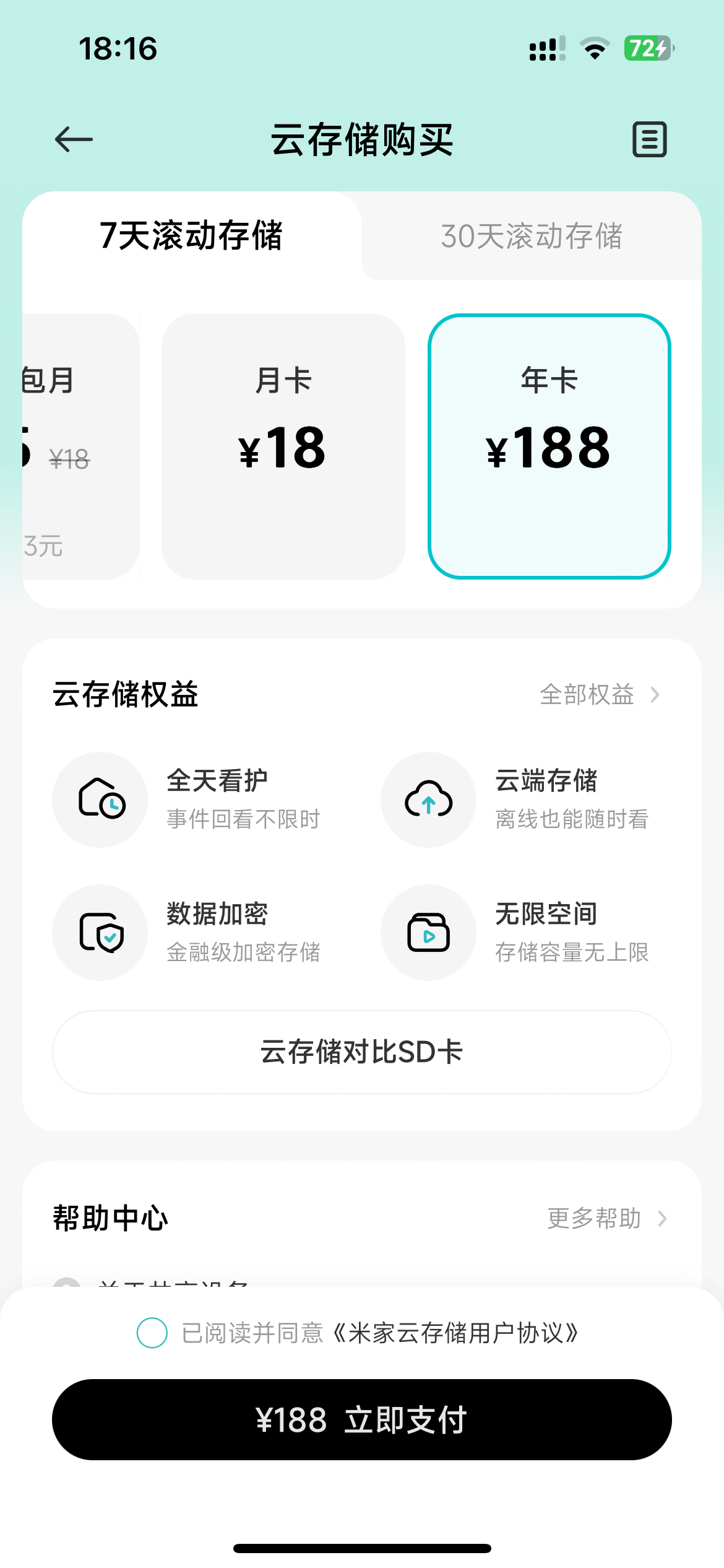 最终我给家里大批量部署选择了小米品牌,但是原因不是上边提到的云存储价格,是因为我连188都嫌贵😂。每台设备每年188,而我至少是有4台设备,将来可能有需要还会继续增加,加一块这费用就可太高了。我想自己实现云存储这个效果,这就是我标题提到的:低成本监控私有云解决方案:小米摄像头+路由器+U盘。