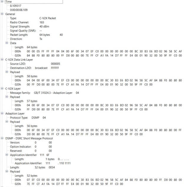 - TEST: 该消息类型通常用于测试和调试C-V2X系统。它可以包含各种测试数据,以验证系统的功能和性能。