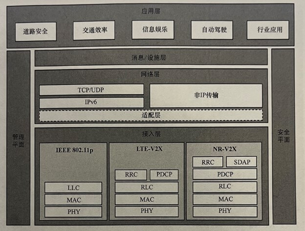 - DSRC(IEEE 802.11p)技术:由IEEE主导标准制定,提供短距离无线传输技术,以车车和车路通信为主要方式。