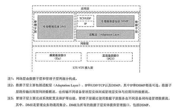 LTE-V2X网络层主要参考的标准是《YD_T 3707-2020 基于LTE的车联网无线通信技术 网络层技术要求》,其框架如下图,支持Uu接口和PC5接口的接入层传输技术: