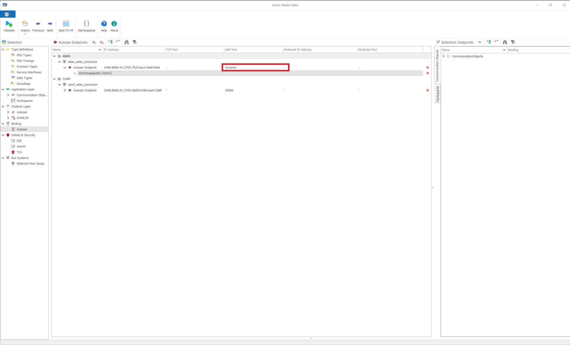 在Binding里边AUTOSAR配置如下,可以看到端口自动设置为Dynamic: