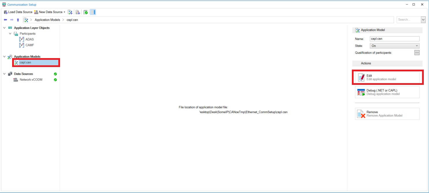 在Communication Setup 窗口点击添加一个.can文件,然后点击右侧的Edit进入编辑器。