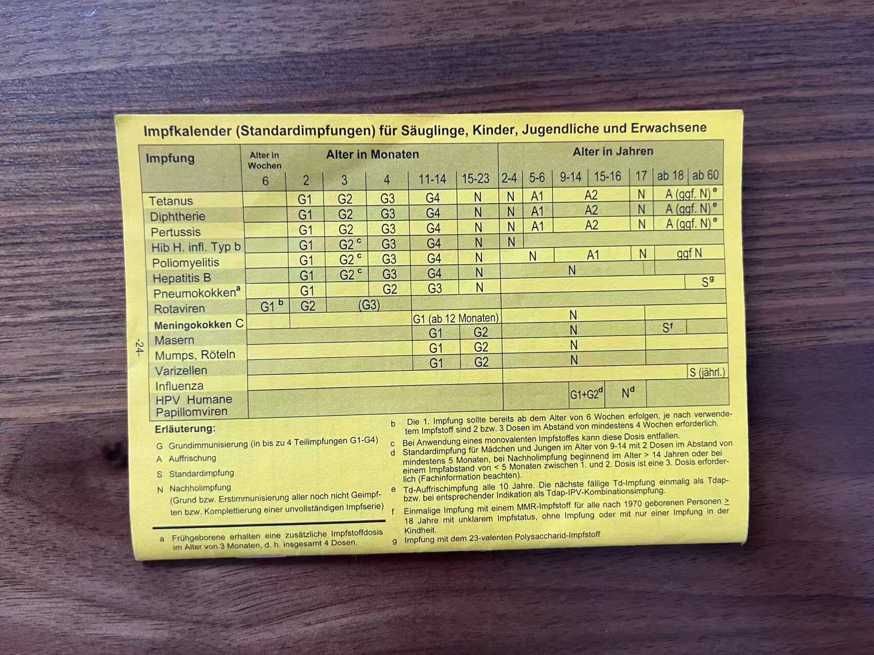 德国比中国疫苗免疫的范围和力度更加周全,比如说肝炎疫苗每10年补一次,以及HPV,这些都是免费的(基础医疗保险报销)。我计划取一个交集,在这基础上再看看有没有其他需要补充的疫苗。花了好长时间去了解这个,记录一下看看能不能对其他人有所帮助。