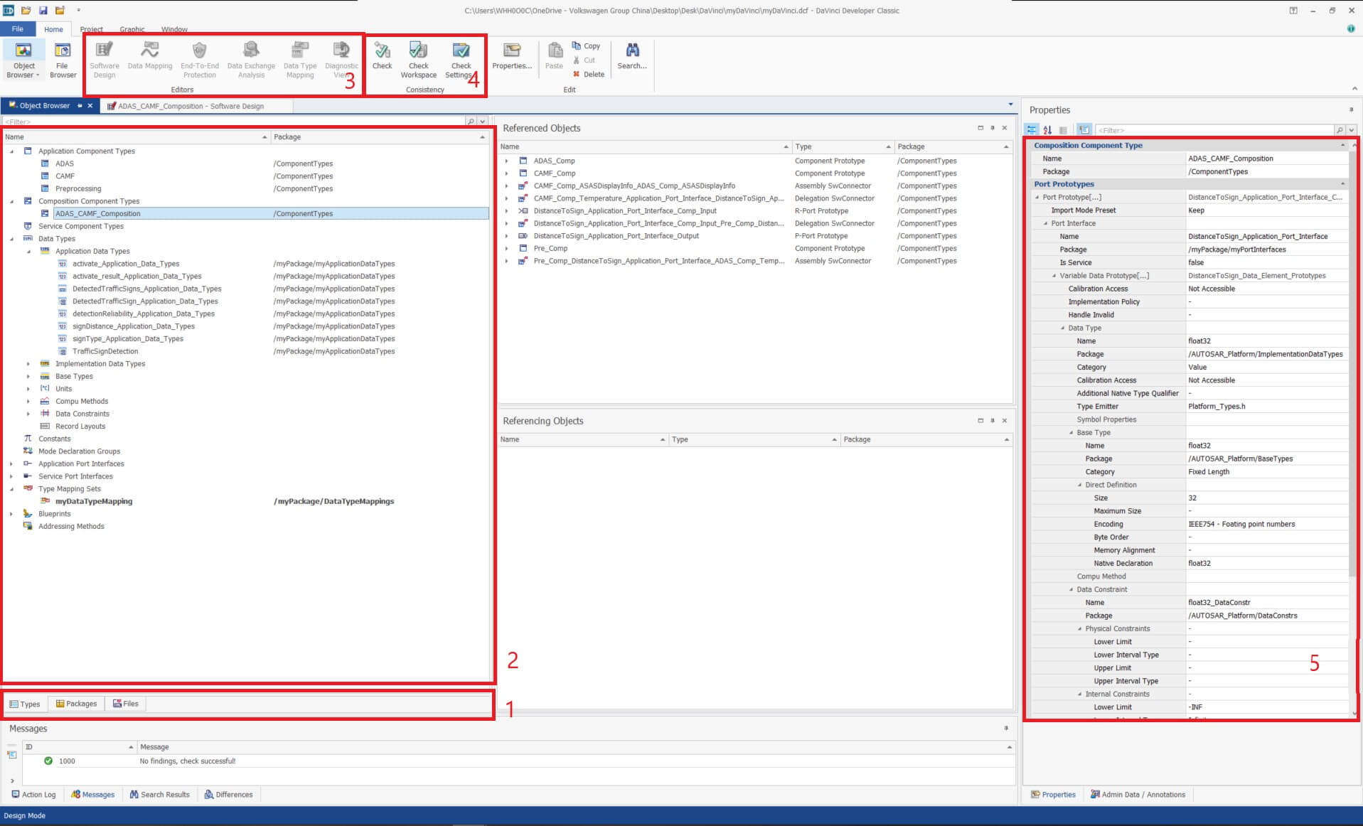 框4是的按钮可以按照AUTOSAR标准来检查我们的设计和配置是否有错误。可以帮我们做一些标准一致性上的检查,还是很实用的。框5是看我们鼠标当下选中的元素的具体属性信息的。