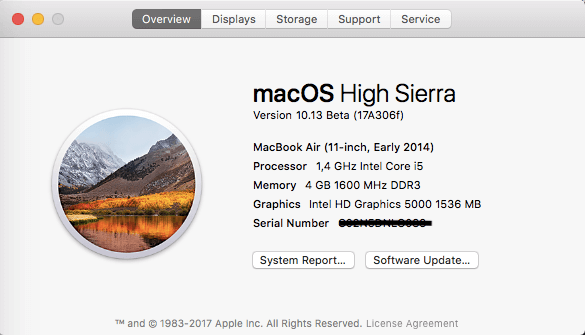 里边的系统版本是 10.13 Beta。然后点击System Report